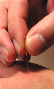 Bei akuten Beschwerden kann der Arzt die Wirkung der Nadeln durch die sog. Stimulation verstärken. Dabei dreht er beispielsweise die Nadeln im und gegen den Uhrzeigersinn.