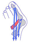 Wir führen die Operation nach Austin/Chevron durch: Der Knochen wird im Bereich des Köpfchens umgestellt und mit einem dünnen Metalldraht oder einer kleinen Schraube fixiert. Beides braucht in der Regel nicht entfernt werden.